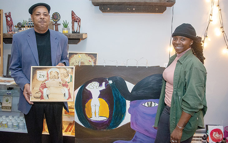 CURTIS CURETON AND DIARRA IMANI, with their artwork at the Natural Healing and Wellness Center on E. Carson Street, Nov. 24. (Photo by Marlon Martin) (Feature Photo)