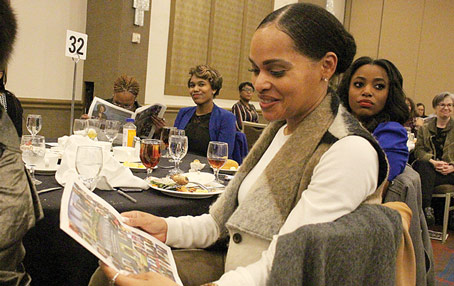 Around noon, the ballroom doors were opened, and people took their seats in anticipation of the event’s beginning. Reverend Dr. Darryl Canady, pastor of Rodman Street Missionary Baptist Church and husband of honoree Rev. Taleeta L. Canady, gave the invocation prior to the food being served.