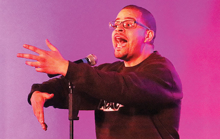 THE POETRY WAS ON FULL DISPLAY at “Poetry Unplugged,” an annual poetry slam event at the August Wilson African American Cultural Center, held this year on Jan. 17. Poets came from Columbus, Philadelphia, Detroit, New York City, and Georgia, while Jacquea Mae, seen in the top left photo, was born and raised right here in Pittsburgh. Mahogany Browne, Michael Bertram and Jessica Care Moore were also featured. More than 350 people packed the AWAACC for the evening affair. (Photos by Courier photographer J.L. Martello)