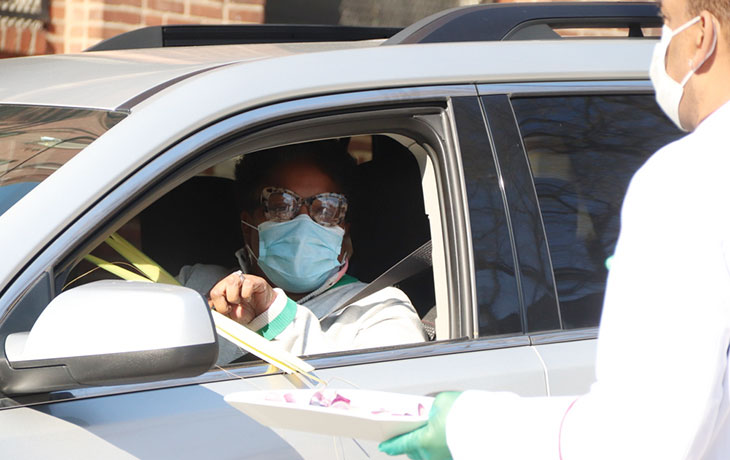And that’s exactly what Rev. Grayson facilitated this past Sunday. Church parishioners, who were able, drove to the church, and while safely in their cars, were met by Rev. Grayson (with a mask on), who gave out communion and palms.