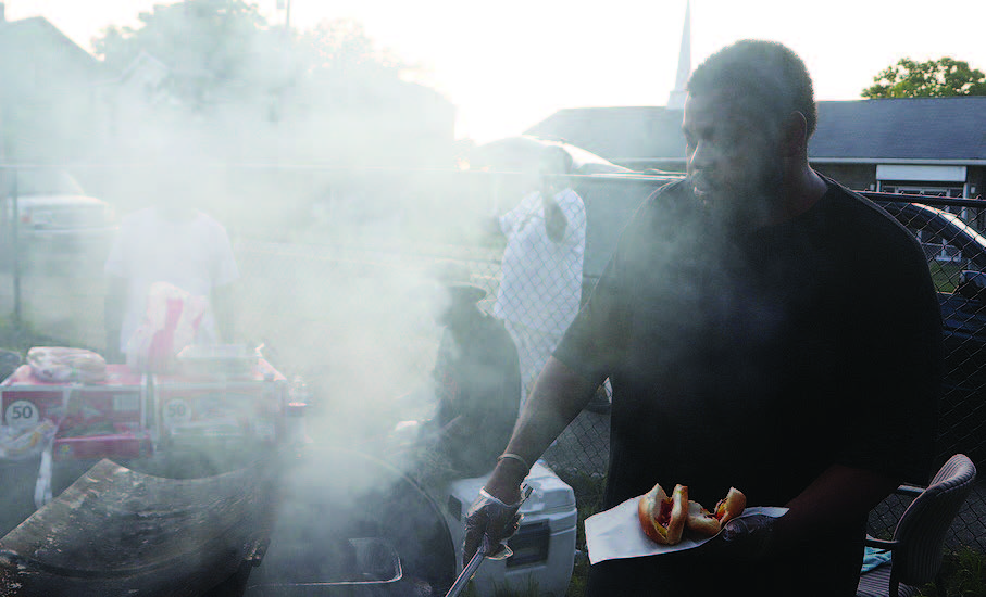 IT’S “BIG B” ON THE GRILL, at The Justice Fellowship Cookout in the Hill District, July 25. (Photos by Courier photographer J.L. Martello)