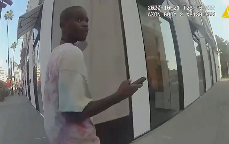 Video captured by a Beverly Hills, California, police officer’s body camera on Oct 1. shows Salehe Bembury, the fashion company’s vice president of sneakers and men’s footwear, admitting to jaywalking at Camden Drive and Wilshire Boulevard before he is released without a citation in under four minutes.