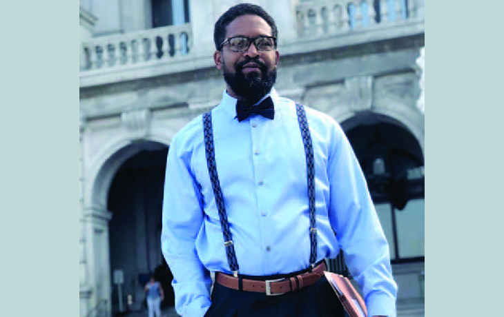 JUDGE DWAYNE WOODRUFF, the Court of Common Pleas’ Supervising Family Court judge, of Corry Sanders: “Corry Sanders is the best ‘comeback’ example that I can give to youth who are adjudicated in my courtroom. Sanders’ story shows kids that they don’t have to let the mistakes of their youth determine their future. Like Sanders, they can get on the right path, work hard, and be a leader in their family, church and community. (Photo by Harry Funk/The South Hills Almanac)