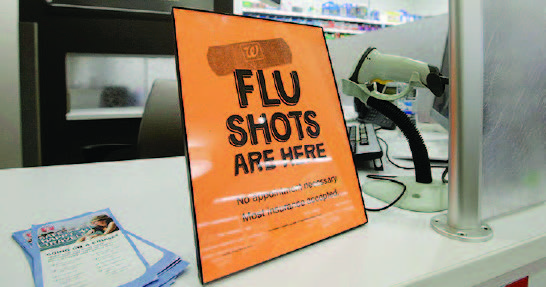 A SIGN lets customers know they can get a flu shot in a Walgreens store. (AP Photo/Darron Cummings/File)