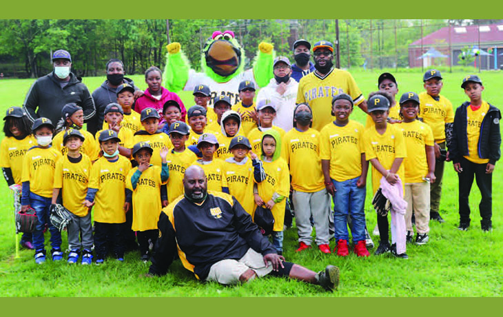 THE PAULSON JUNIOR PIRATES got a surprise visit from none other than the Pirate Parrot! It all happened at Paulson Field in Lincoln-Lemington on May 3. He came bearing gifts, too! Such as T-shirts and other baseball equipment. Paulson Coach Jeff Marion, who is also pictured below in the middle, told the New Pittsburgh Courier the divisions of the Paulson Junior Pirates are: Tee-ball (ages 5-6), Coach Pitch (ages 7-8), ages 9-10 and Pony League. “It’s a community project,” Marion said. “It’s strictly about giving these kids another outlet.” (Photos by Rob Taylor Jr.)