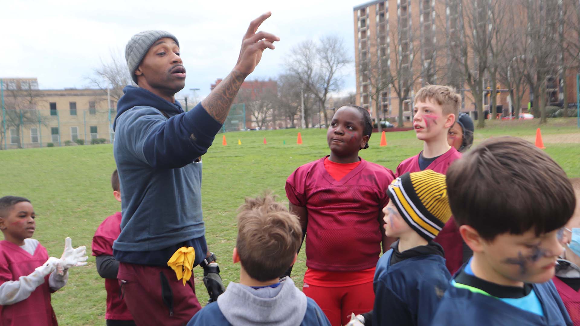 “I always believe that organized sports teaches students collaboration,” voiced Molly O’Malley-Argueta, principal of Pittsburgh Allegheny K-5, in an interview with the New Pittsburgh Courier, April 8. The interview took place while students in grades 2-5 were playing outside in the field near the school in the “Spring Showdown,” a 15-on-15 two-hand-tag football game. The game was watched by other students and even had students playing instruments in a makeshift band. Some students became de facto cheerleaders, as well. Other students helped to keep score. “I think it’s just helped bring students together that don’t look alike, aren’t from the same neighborhood. We get students from the North Side, East End, we’re a full magnet. (Football) brings them together for a common goal.”