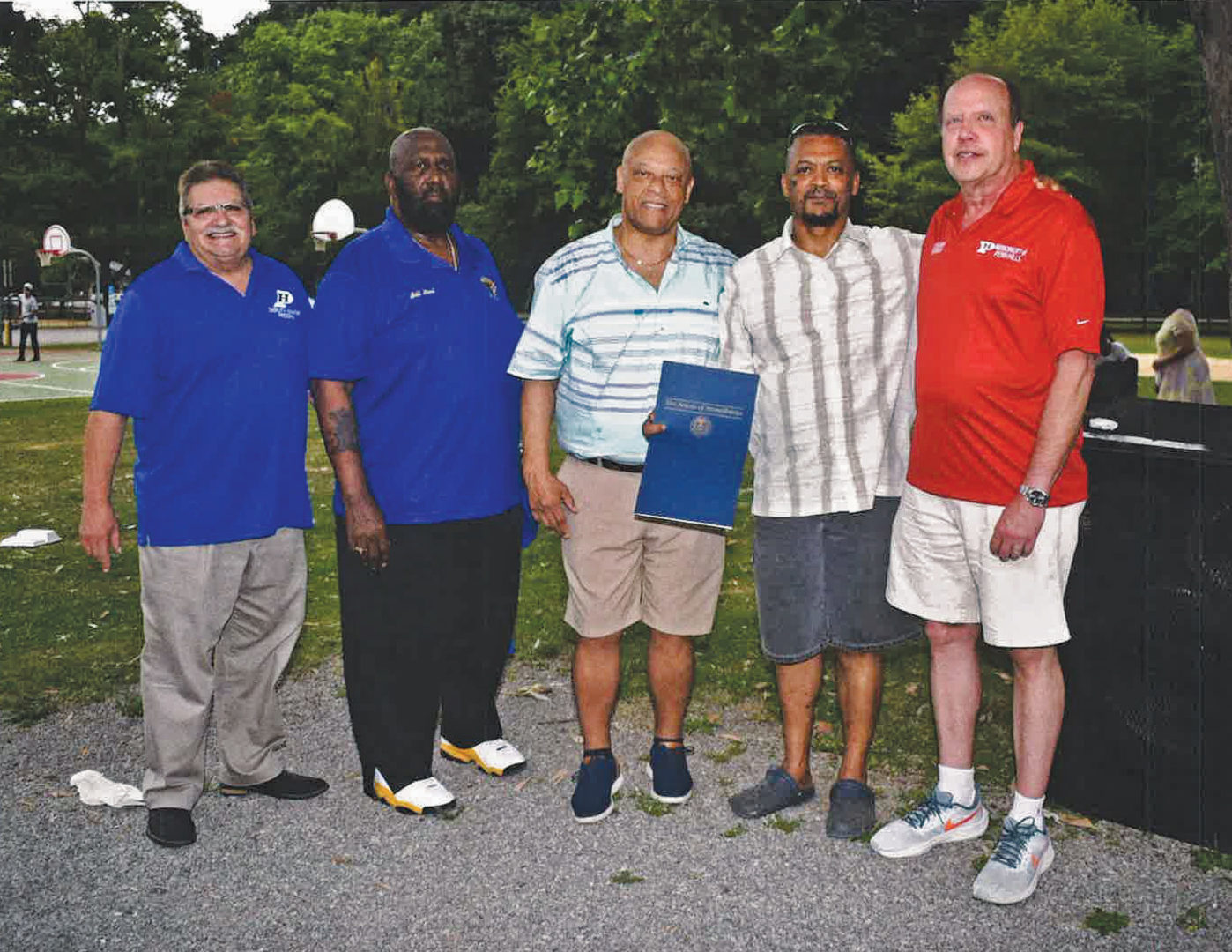 Penn Hills deputy Mayor Frank Pecora (far left) and Councilmen Mark Brodnick (far right) presented the Penn Hills group with a proclamation from the Mayor’s office. Also in the photo, left to right, are Bill Neal, Dwayne Rideout and Brandon Thomas.
