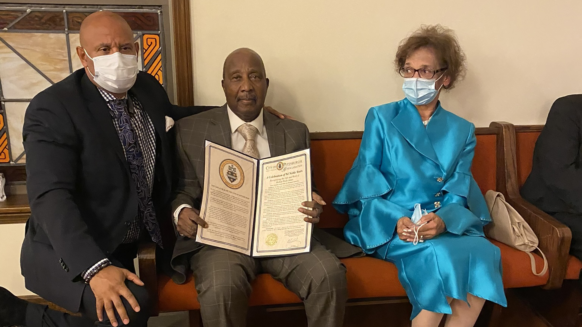 BISHOP WADE JONES AND ALTA RAE JONES WITH A PROCLAMATION FROM THE CITY OF PITTSBURGH