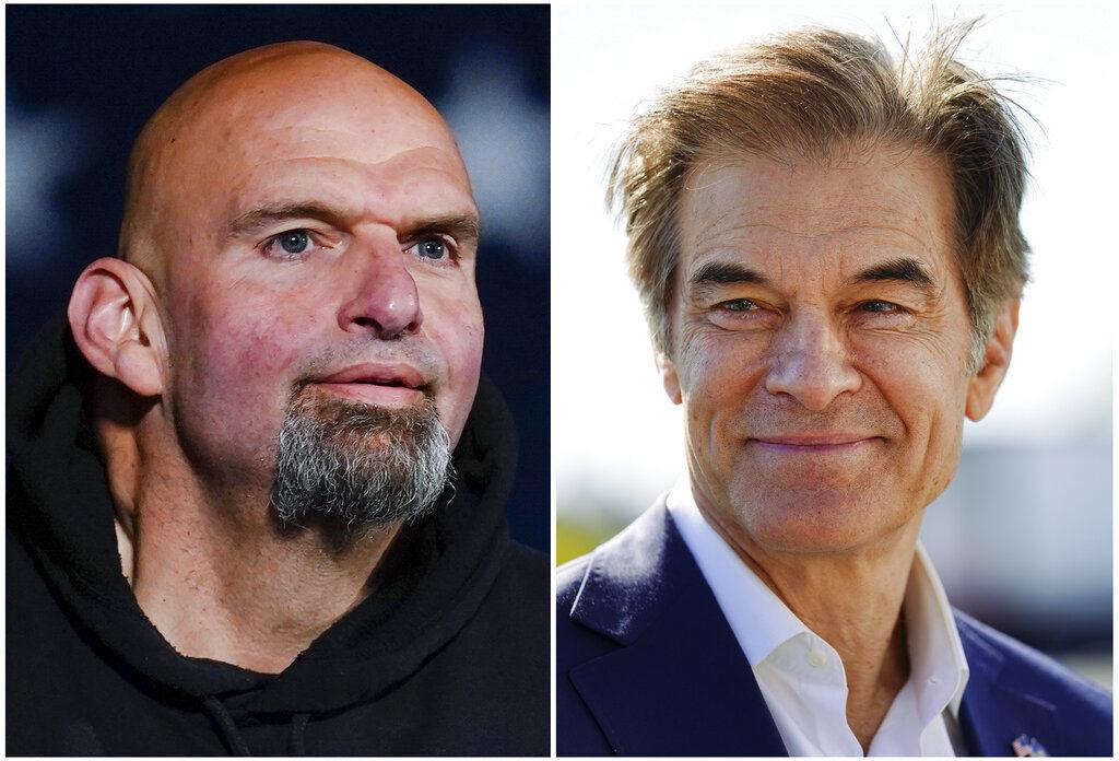This combination of photos shows Pennsylvania Lt. Gov. John Fetterman, a Democratic candidate for U.S. Senate, Oct. 8 in York, Pa., left, and Mehmet Oz, a Republican candidate for U.S. Senate, Sept. 23 in Allentown, Pa.— AP Photo/Matt Rourke, File