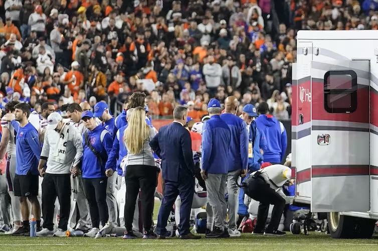 But in the case of Buffalo Bills safety Damar Hamlin, who collapsed to the ground after a tackle during the “Monday Night Football” game between the Bills and the Cincinnati Bengals, it quickly became apparent that this was no broken arm or torn ACL. This was a matter of life and death. Paramedics worked to keep him alive on the field before he was transported to a hospital, where he remains in critical condition.