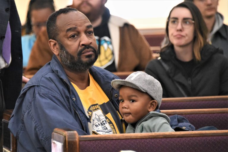 State Sen. London Lamar after Monday’s press conference/rally at Mt. Olive Cathedral C.M.E.: