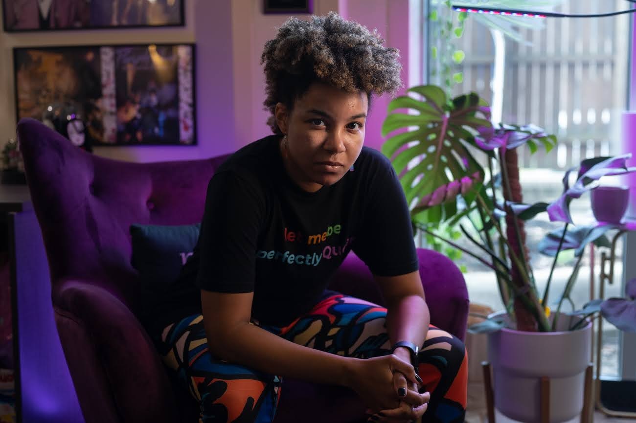 Coley Alston, program director of Hugh Lane Wellness Foundation, sits for a portrait in their office on Monday, March 6, 2023, in East Liberty. Alston is an advocate for inclusive healthcare for all gender expressions. (Photo by Stephanie Strasburg/PublicSource)