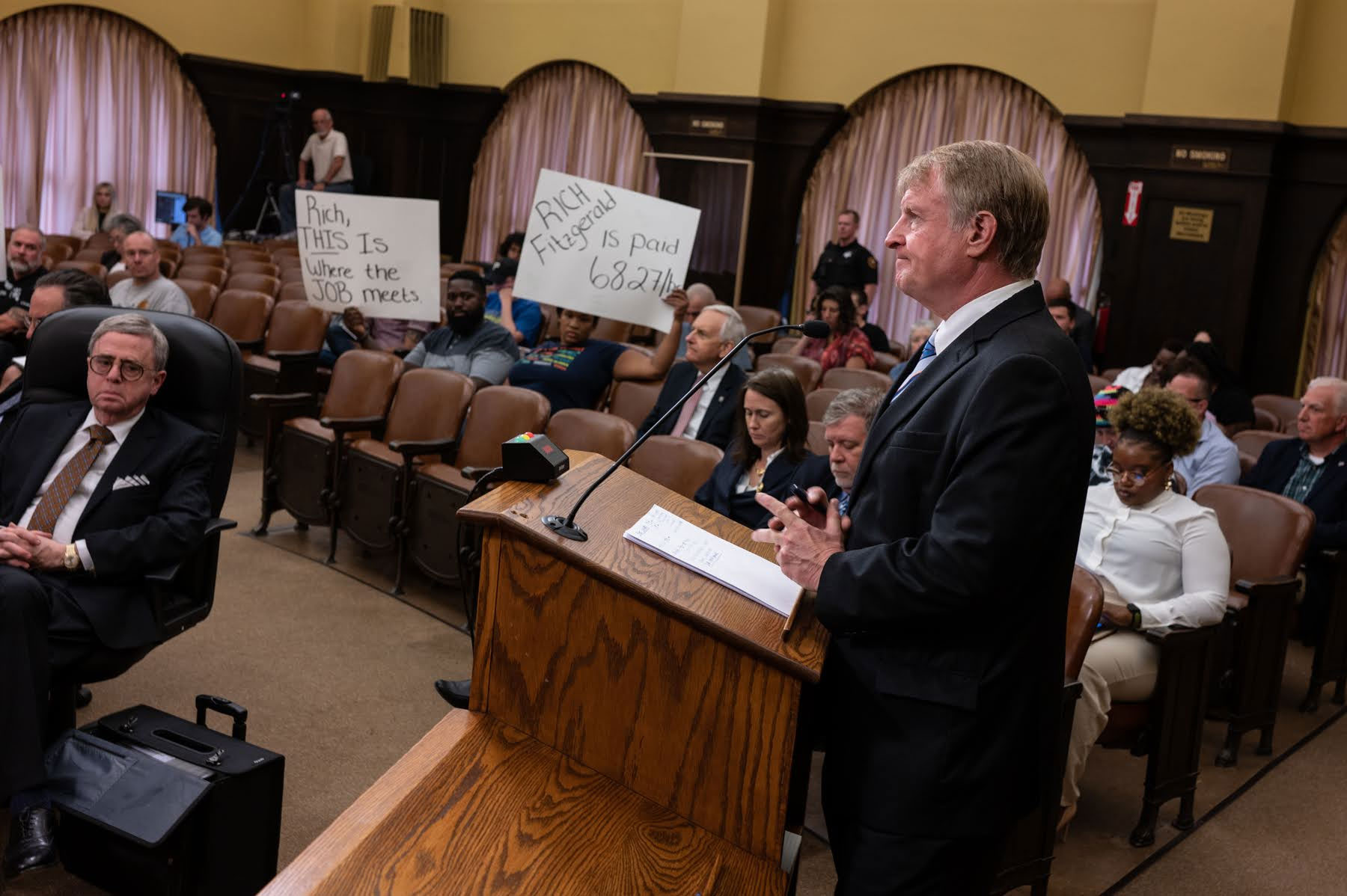 Fitzgerald wrote in a message to council members that his veto was more focused on process and separation of powers than substance. He referenced a legal opinion from the county solicitor that said that the county’s Home Rule Charter gives the power to set wages only to the executive branch, not the legislators. He also claimed that the law is invalid because the executive has sole power to negotiate collective bargaining agreements, and the new wage scheme would contradict some existing agreements.