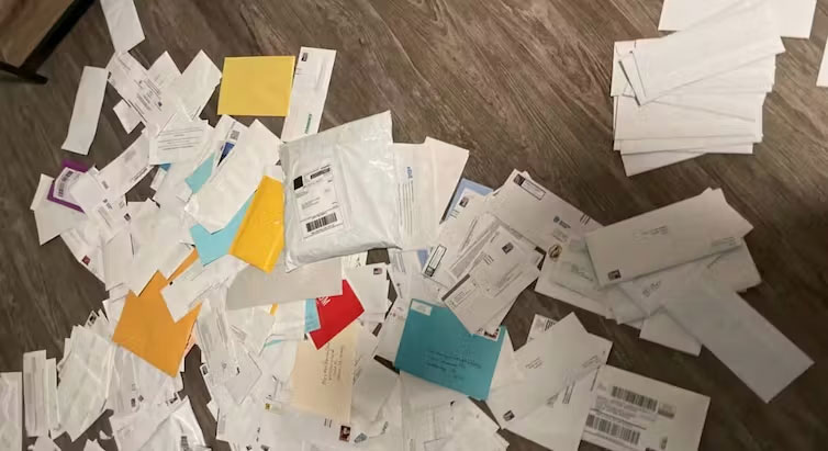 Loot stolen from the U.S. Postal Service is displayed on the dark web.