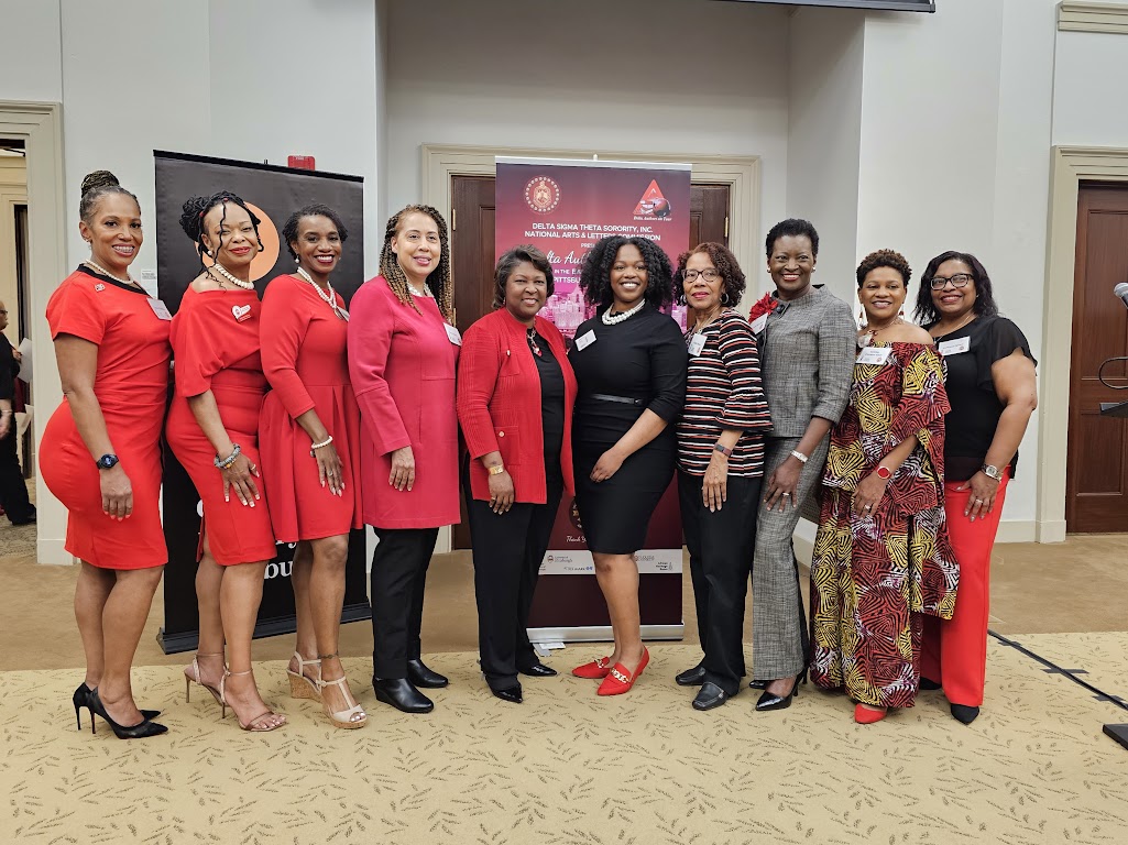 WOMEN OF DELTA SIGMA THETA SORORITY INC., AT THE “DELTA AUTHORS ON TOUR” EVENT AT THE UNIVERSITY OF PITTSBURGH, MAY 6. INCLUDED IN THE PHOTO ARE THE EIGHT AUTHORS WHO WERE FEATURED AT THE EVENT.