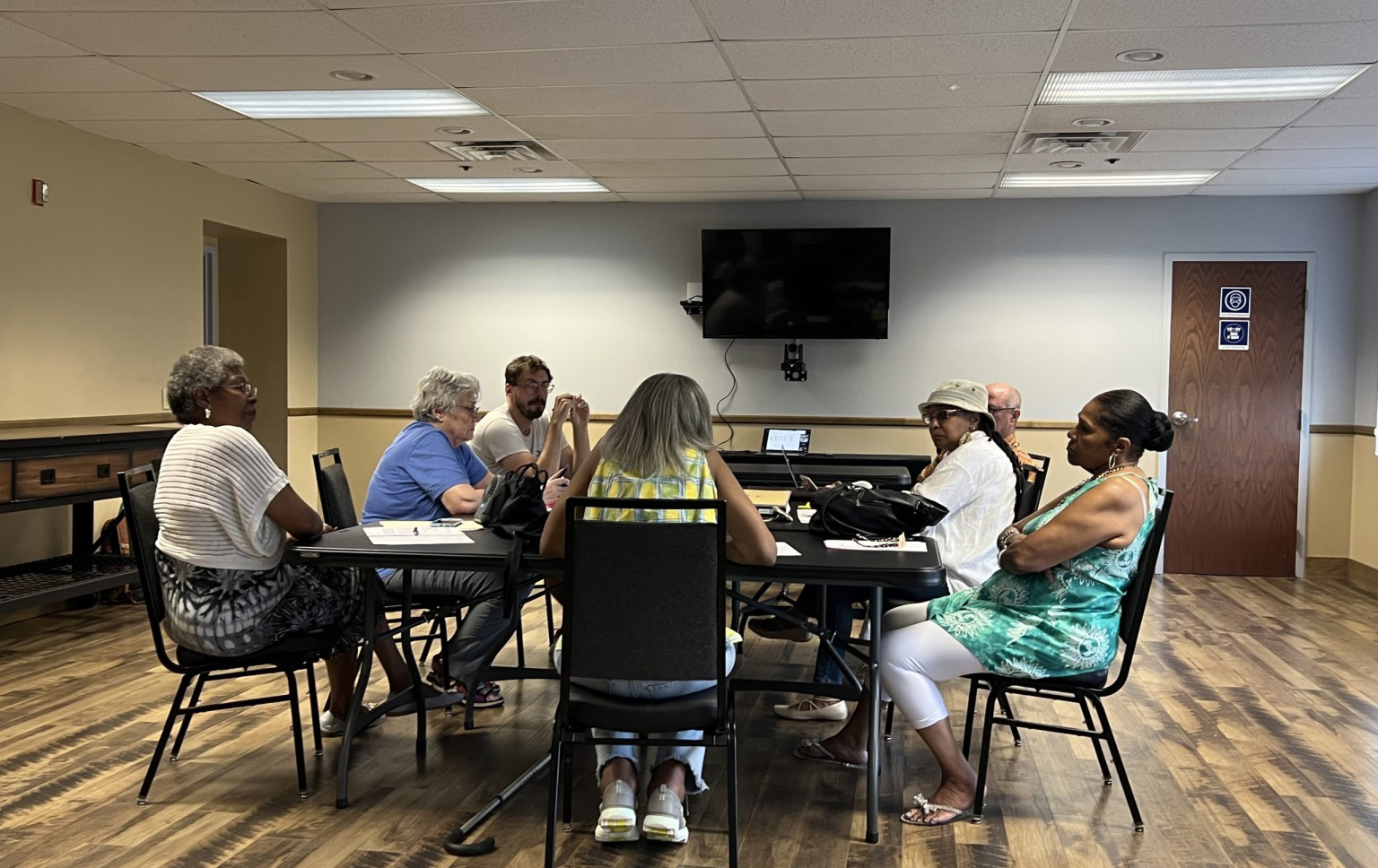 The Wilkinsburg Government Study Commission at a July meeting at Hosanna House in Wilkinsburg (Photo by Charlie Wolfson/PublicSource)