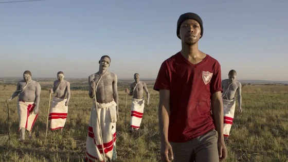 Nakhane (front) stars in Inxeba (The Wound), a South African film about gay love at an initiation school. Inxeba/Urucu Media