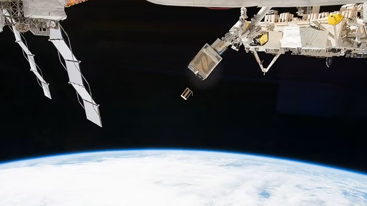 Thousands of the satellites orbiting Earth are small – like this cubical satellite seen here being released from the International Space Station. NASA, CC BY-NC