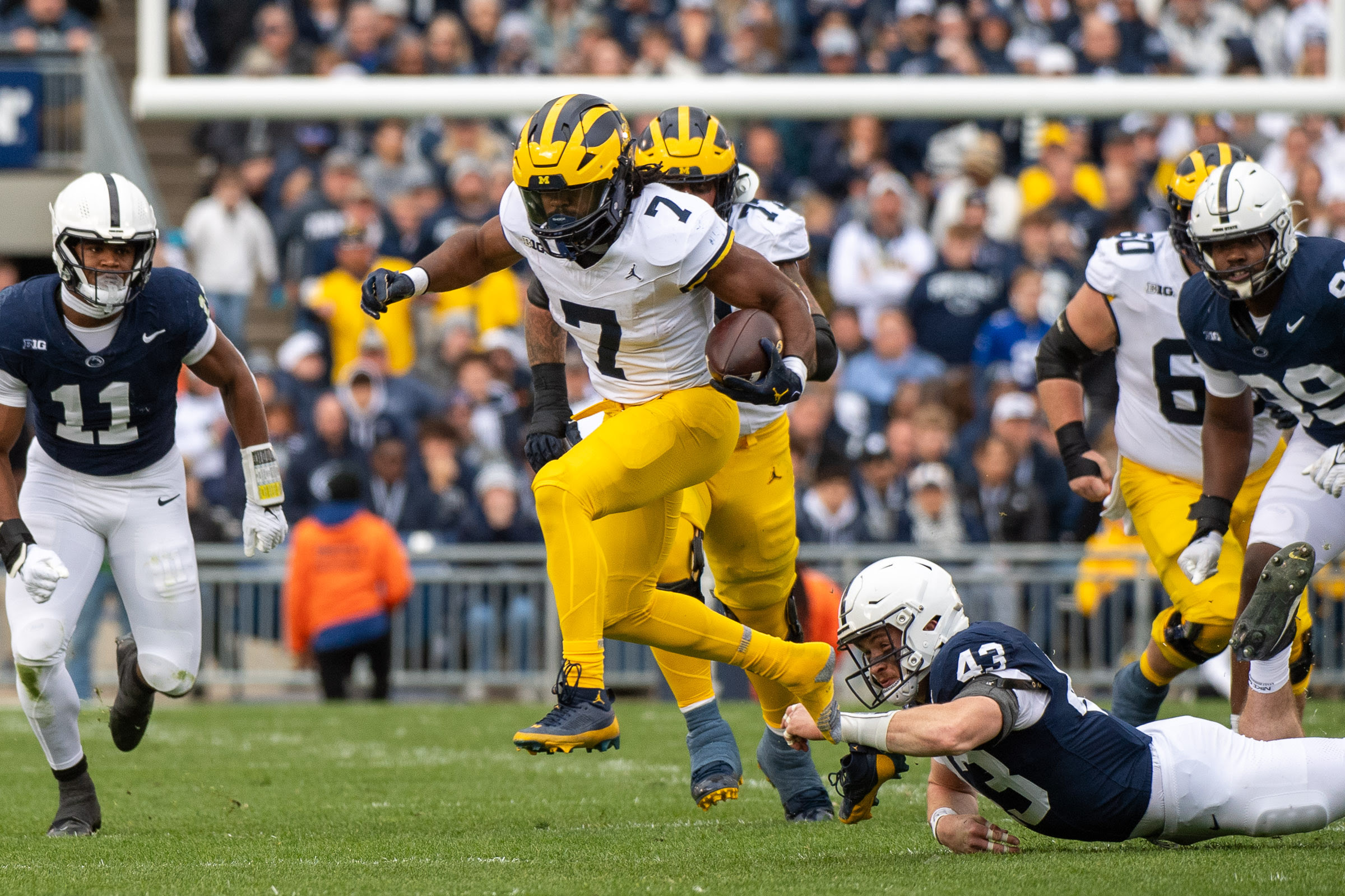 Michigan’s No. 3-ranked football team went on the road to Penn State and came out on top 24-15 to stay undefeated on the season. Through a year of distractions, including a second suspension handed down on Head Coach Jim Harbaugh the day before, the Wolverines focused and tamed the Nittany Lions in front of the second largest crowd ever at Beaver Stadium in Pennsylvania. Harbaugh and Michigan learned just 21 hours earlier that the Big Ten Conference would impose a three game suspension to Harbaugh for what has come out regarding in-person sign stealing tactics by former staffer Connor Stallions. Stallions has since resigned from Michigan.