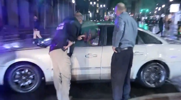 The silver sedan displayed visible damage to its bumper. Security officers quickly surrounded the car and drew their weapons on the unidentified African American male driver, who raised his hands in compliance.