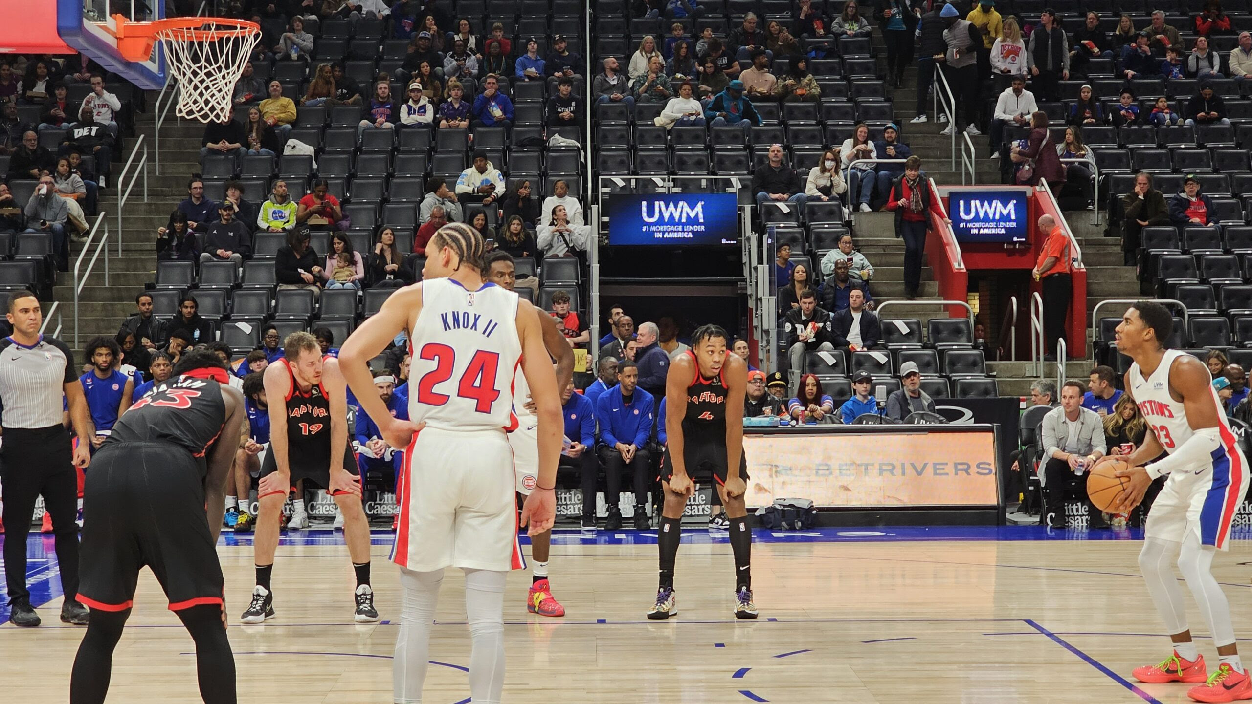 Burks and fill-in starter Kevin Knox II – starting in place of the injured Isaiah Stewart – had the hot hands for the Pistons in the first half, as the two combined to score 21 points on 6-of-9 from the field and 4-of-5 from three. Duren was one basket shy of a first-half double-double, as he poured in eight points to go along with 11 rebounds in the first half. And while Cunningham shot just 1-of-8 for four first-half points, he added five assists.