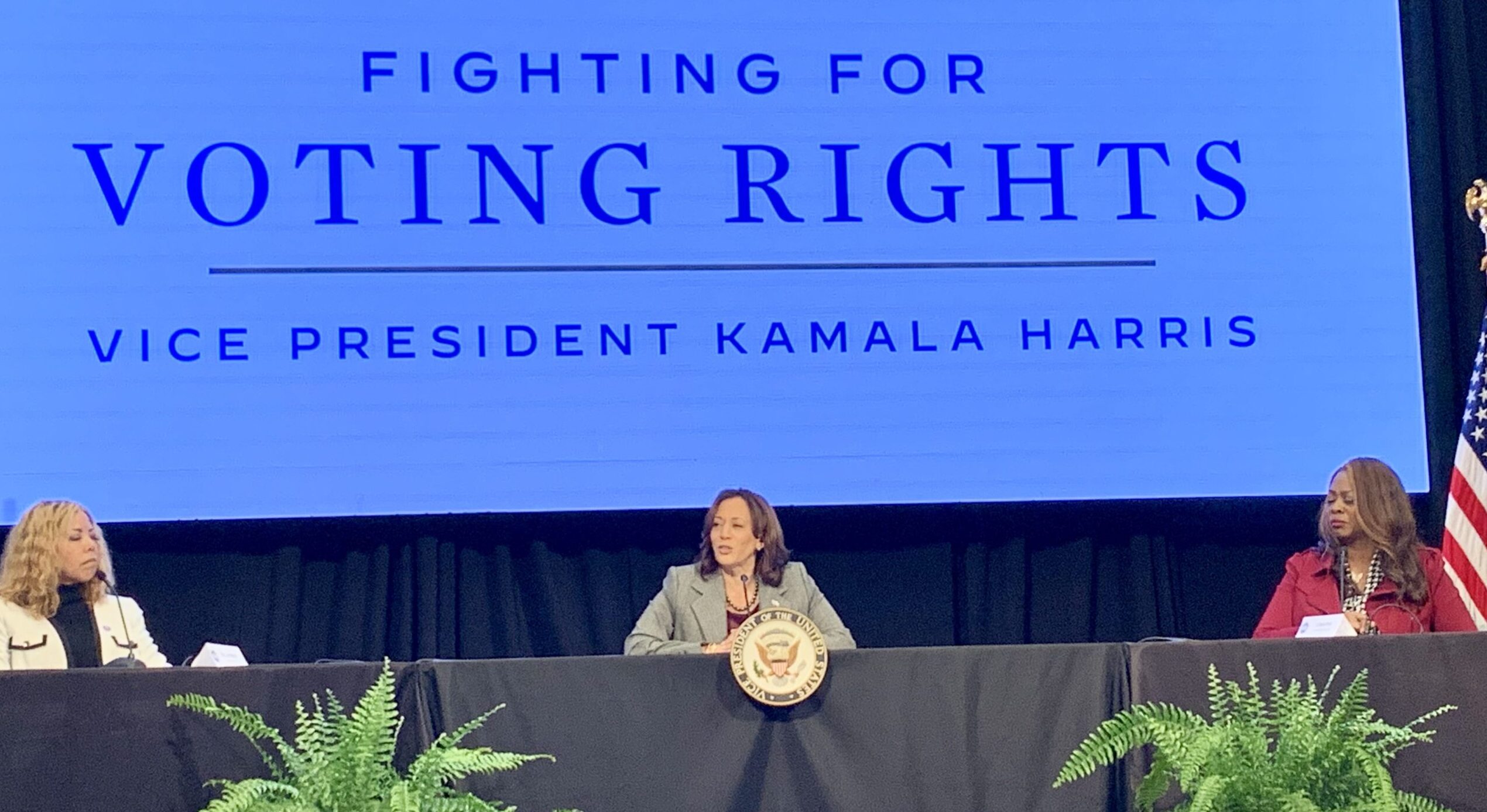 “I believe it’s a full on attempt to attack fundamental freedoms and rights in our country,” Harris said. “Not only the freedom to have access to voting, the freedom for people to make decisions about their body, for women to make decisions about their own mind, the freedom of people to be safe from gun violence. There’s so much right now that is challenging as a country. The leaders at this table, I know that we are prepared for the challenges. We will work together and continue to build coalitions and to remind people that voting is an expression of their voice. And these are the voices that lead to good outcomes.”