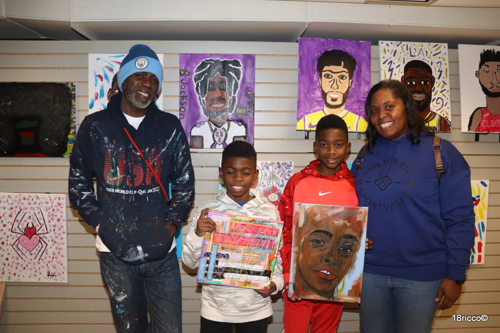 The New Pittsburgh Courier was there as Diane Neely held a “Pop-up Art Shop” at the Steel City Emporium, Feb. 24. It featured pieces from Kenneth Neely and his students from Imani Christian Academy. In this photo above, it’s the Neely family in front of artwork and their sons holding artwork that Mr. Neely’s students created. (Photos by J.L. Martello)