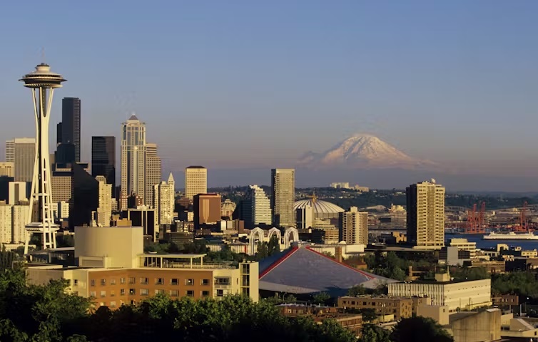 The Seattle skyline with Mt. Rainier in the background. Wolfgang Kaehler/LightRocket via Getty Images