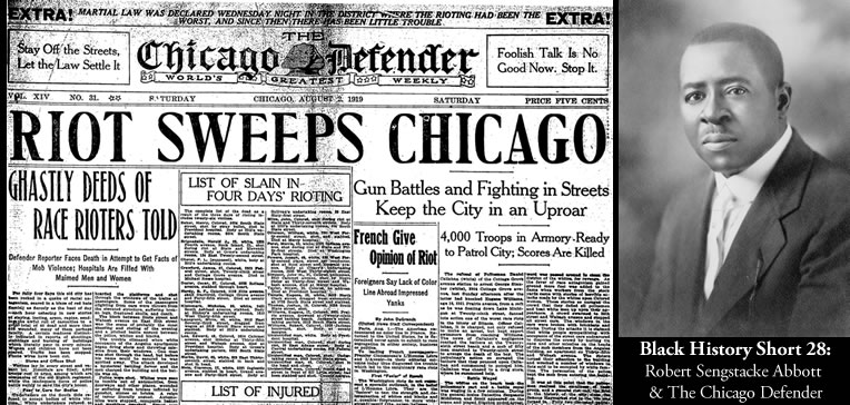 1905—Robert Sengstacke Abbott founds the Chicago Defender news­paper calling it “the world’s greatest weekly.” Indeed, he would build the Defender into the largest circulation and most influential Black newspa­per of its day. The Defender, which became the most widely circulated Black newspaper in the country, came to be known as “America’s Black Newspaper” and made Abbott one of the first self-made million­aires of African American descent. In 1919, Illinois Gov. Frank Lowden appointed Abbott to the Race Re­lations Commission. Abbott died of Bright’s disease in 1940 in Chicago, Ill.