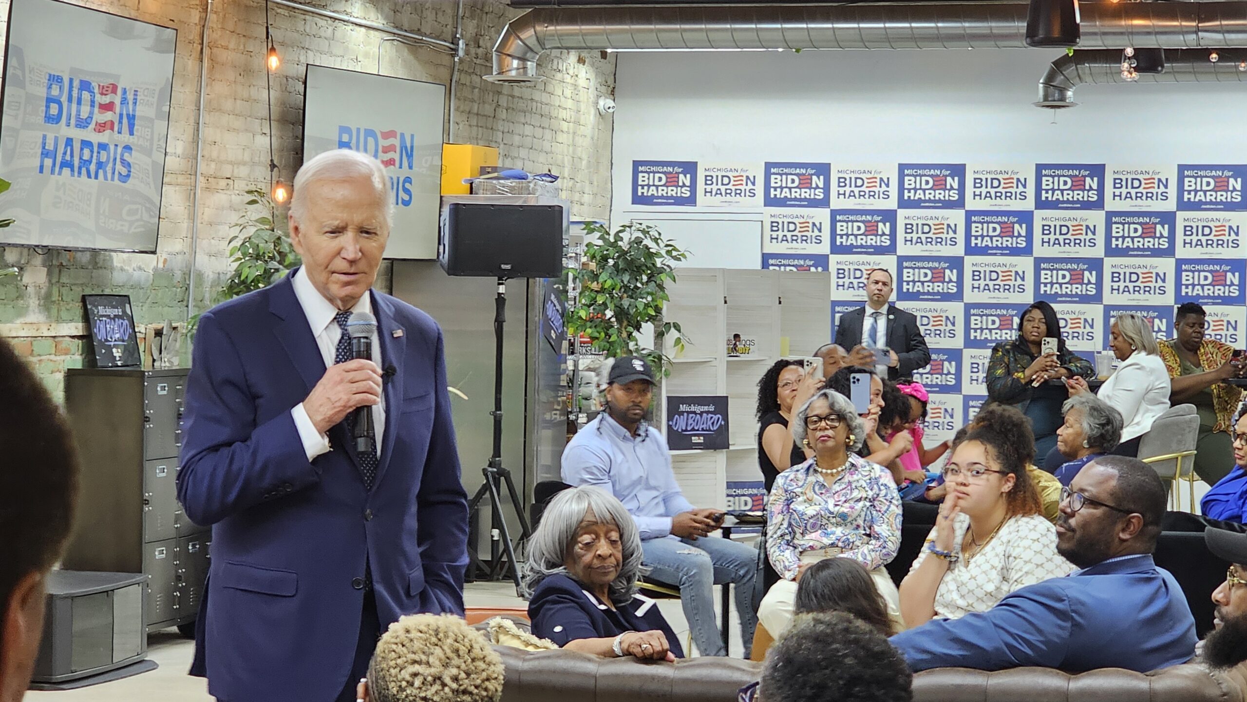 After speaking in front of media for about 10 minutes, Biden’s security swept the room of reporters so that the president could dive into more intimate conversations with the Detroit residents on hand.