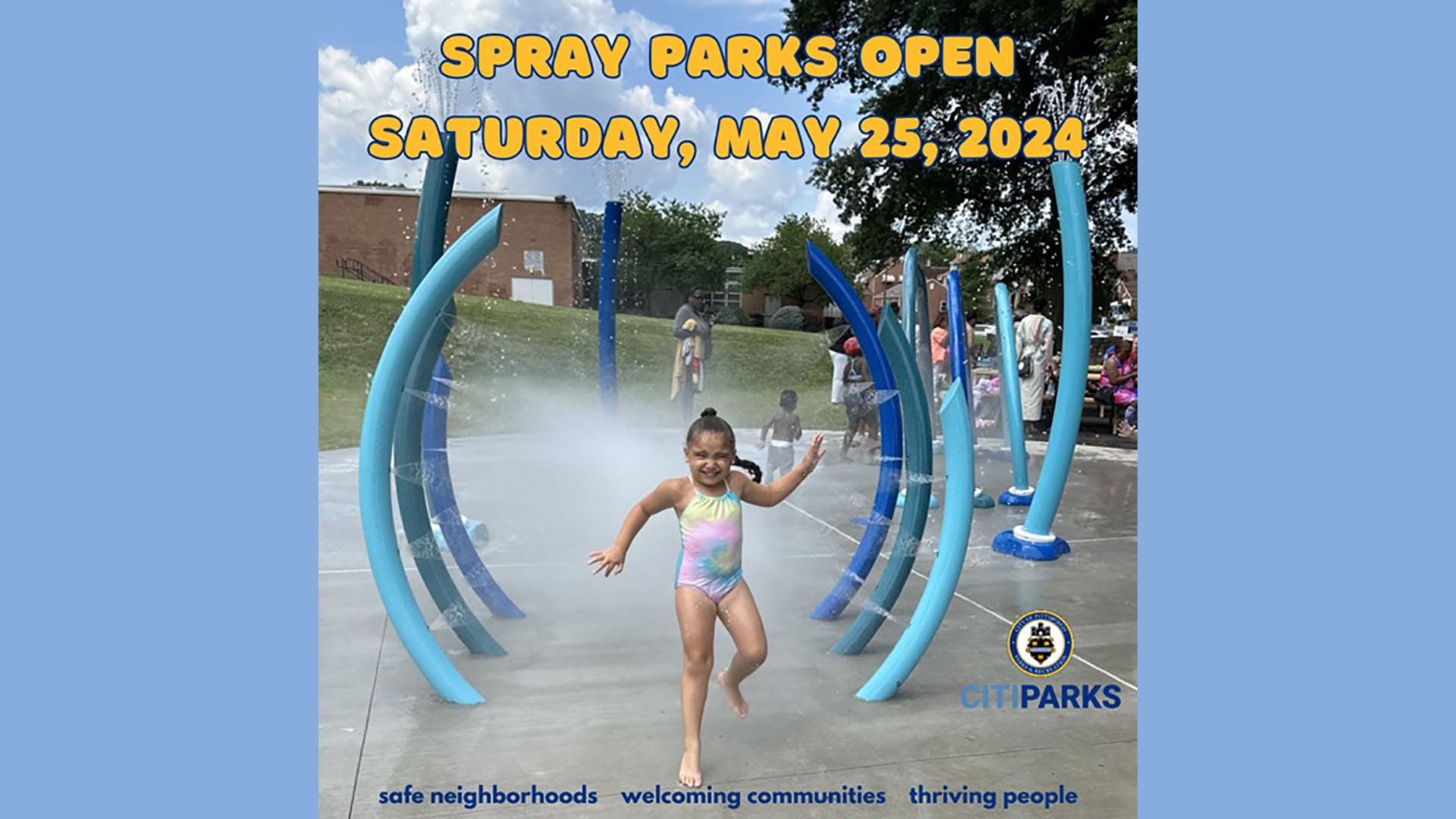 CitiParks Spray Parks OPEN Saturday, May 25th with operation hours of 10 AM to 8 PM daily. Additional Spray Park details can be found here: https://pittsburghpa.gov/citiparks/spray-park