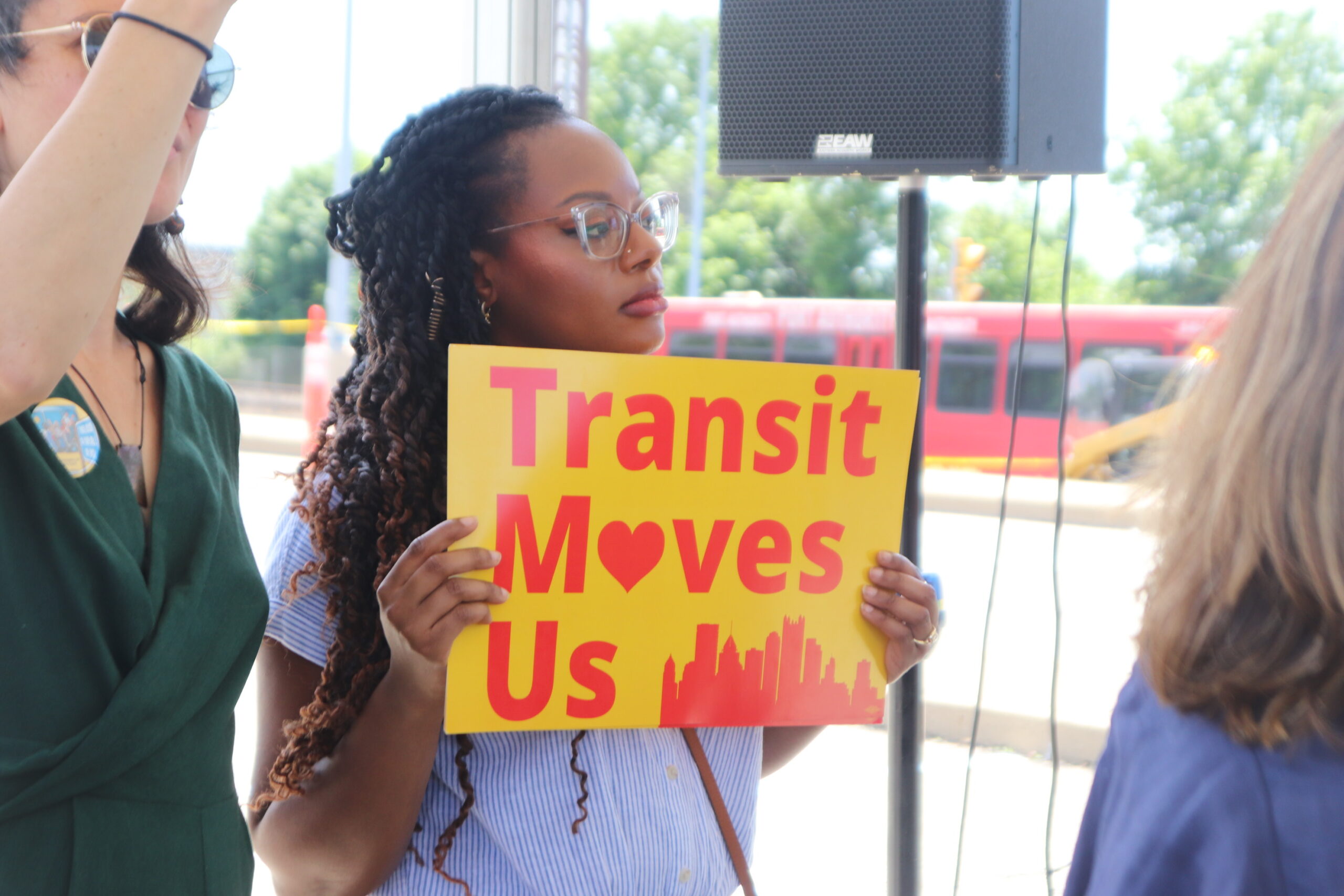 The announcement was cheered by members of Pittsburghers for Public Transit, which, on a hot, Monday afternoon, boasted a number of African American members, such as Cheryl Stephens, William Anderson, Teaira Collins and Sherai Richardson.