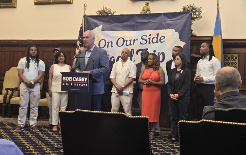 Sen. Bob Casey joined 11 City Council members and other elected officials from Philadelphia Friday morning to pitch his record to voters on voting rights. With his opponent David McCormick coming to town Saturday with former President Donald Trump, Casey wanted to remind voters about his work to sustain and further suffrage, including the John Lewis Voting Rights Act in 2022.