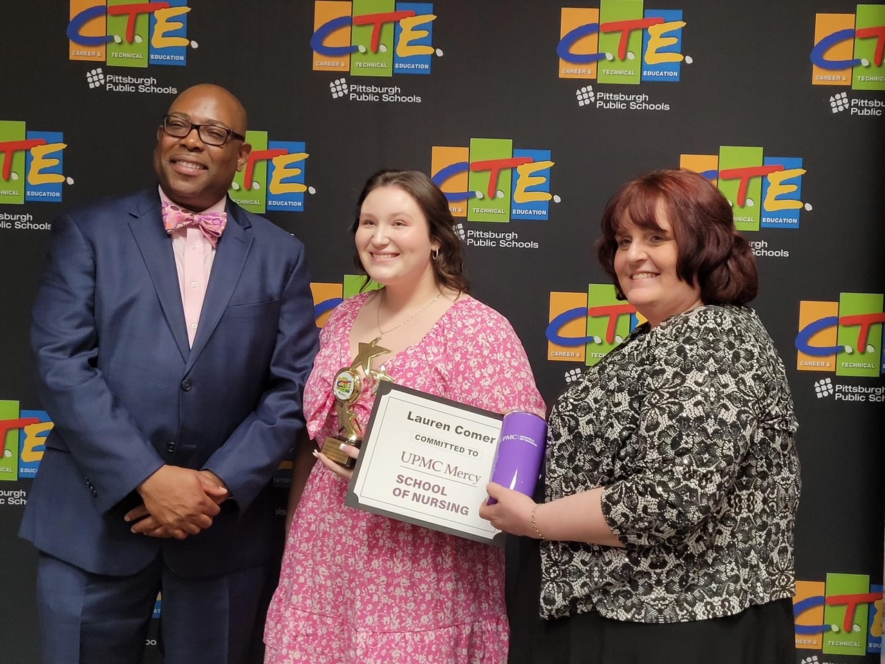 The celebration honoring the seniors’ achievements in CTE programs was held, May 2, at the Pittsburgh Federation of Teachers Building on the South Side. Among those who attended and/or gave remarks were Pittsburgh Mayor Ed Gainey, Pa. State Director of CTE Judd Pittman, PPS Superintendent Dr. Wayne Walters, PPS Board of Directors President Gene Walker, and Mike.