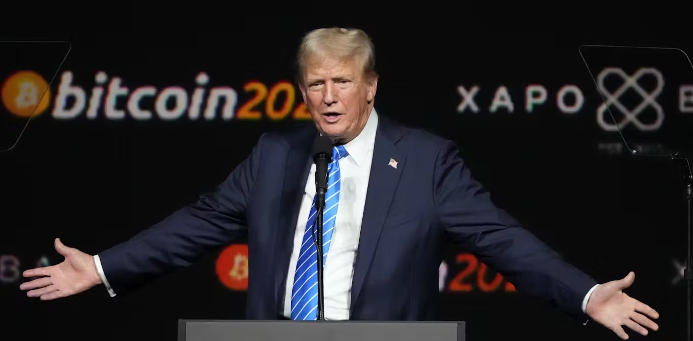 Donald Trump speaks at the Bitcoin 2024 Conference in July 2024 in Nashville, Tenn. (AP Photo/Mark Humphrey)