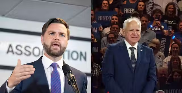 Different on choice and on gender equality: JD Vance and Tim Walz. AP Photo/Kayla Wolf/Bruce Cotler/ZUMA Press Wire