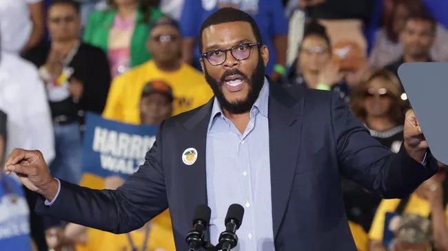 Tyler Perry slammed former President Donald Trump during his speech at a campaign rally in Atlanta for Vice President Kamala Harris.