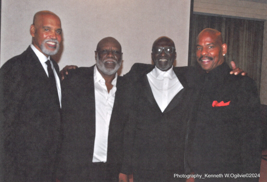 It simply doesn’t get any better than this and I truly mean that!  (Left to right) Kirk Bruce, Pitt University star, ABA Utah Stars draft selection, Pittsburgh City League and Connie Hawkins League Hall of Fame; Bobby Byrd, Pittsburgh City League Basketball Legend and Connie Hawkins League Hall of Fame; Ricky “Black Magic” Coleman, Schenley H.S. Legend, Pittsburgh City League Hall of Fame, Connie Hawkins League Hall of Fame, and Boston Celtics draft selection; and Baron “BB” Flenory, Valley H.S./New Kensington Basketball phenom, Duquesne University superstar, draft selection by the Boston Celtics, European Pro League Champion, voted top 100 in PA Basketball History.