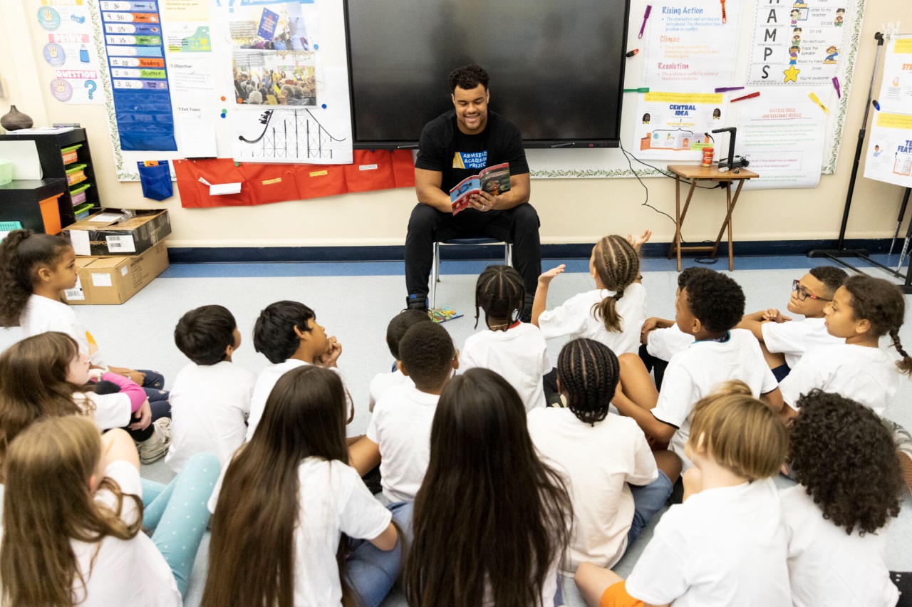 Arik and his wife, Mindy, co-founders of the Armstead Academic Project (AAP), visited West Riverside Elementary to host the Armstead Academic Project’s (AAP) latest storytime focusing literacy and education. The Armsteads also donated $50,000 to Sacramento’s Department of Sound to launch an after-school program combining music, podcasting, STEAM and mental health support for students.