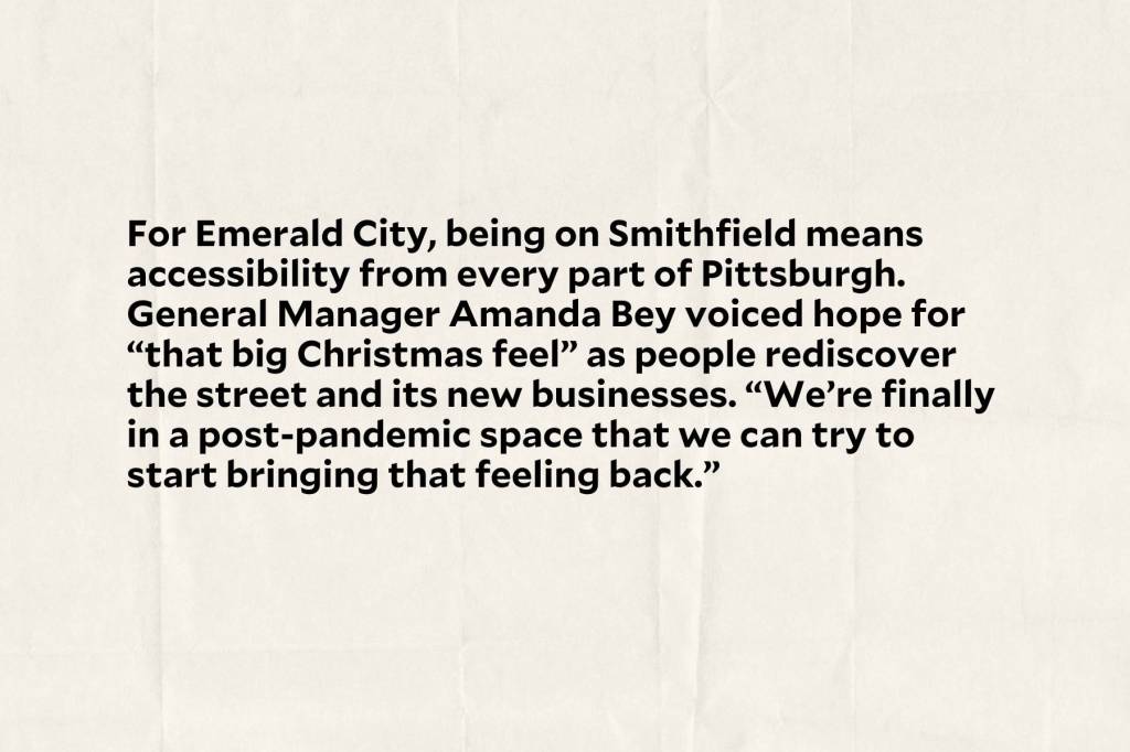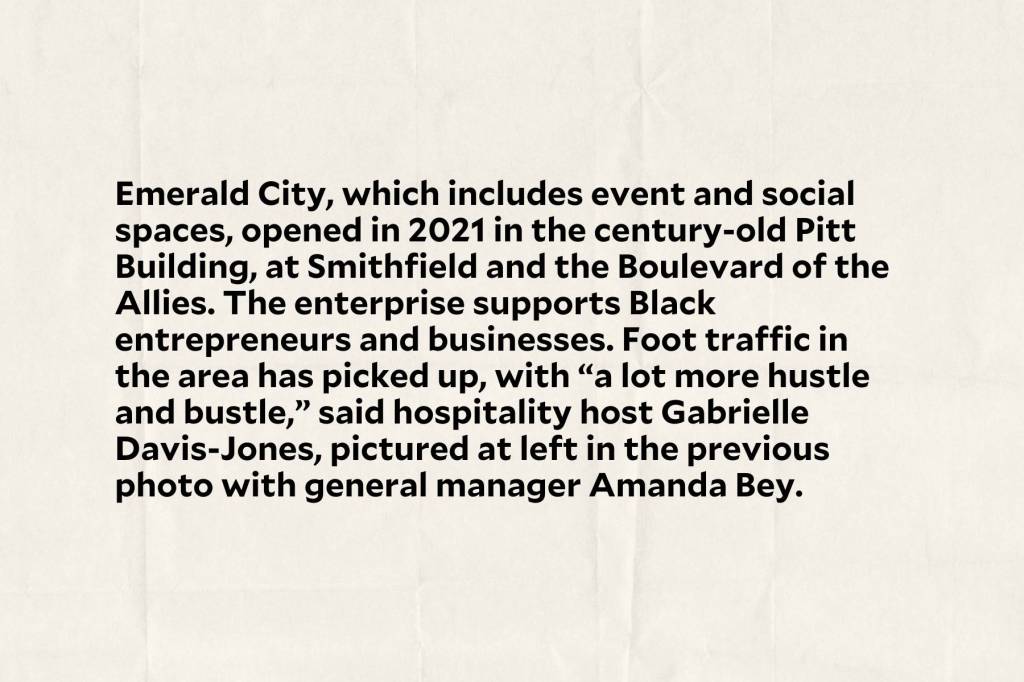 “Going to the Smithfield Street stores — that was the first time I ever went to a [make-up] counter or went to a LUSH store,” said Davis-Jones, hospitality host at the Emerald City coworking and event space established in 2021 on Smithfield’s 200 block. The street “was truly a hub.”