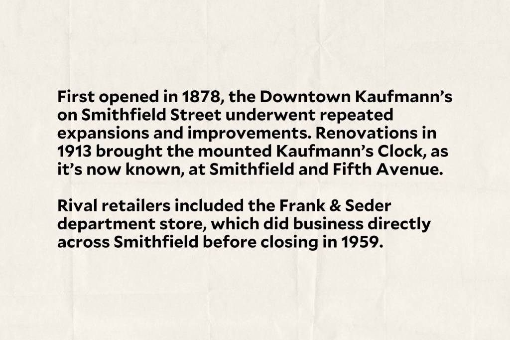 Now smaller stores, offices, apartments and other functions tend to occupy buildings like the old Gimbels at Smithfield and Sixth Avenue, which closed in 1986 and is now the Heinz 57 Center office building (leased largely by UPMC). Kaufmann’s at Smithfield and Fifth Avenue became Macy’s in 2006 before closing in 2015. Its occupants now include a Target, a Burlington and a Five Below, all retailers opened since 2022.