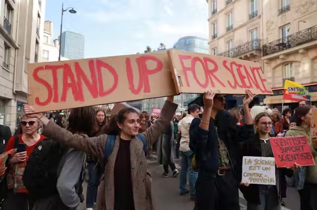 Scientists across the U.S. and in other countries have rallied in reaction to the Trump administration’s cuts to major science agencies. Mohamad Salaheldin Abdelg Alsayed/Anadolu via Getty Images