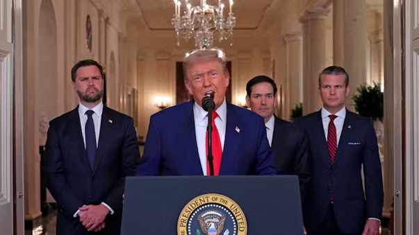 US President Donald Trump addresses the nation on Iran strikes on June 21, 2025. Carlos Barria/AFP via Getty Images