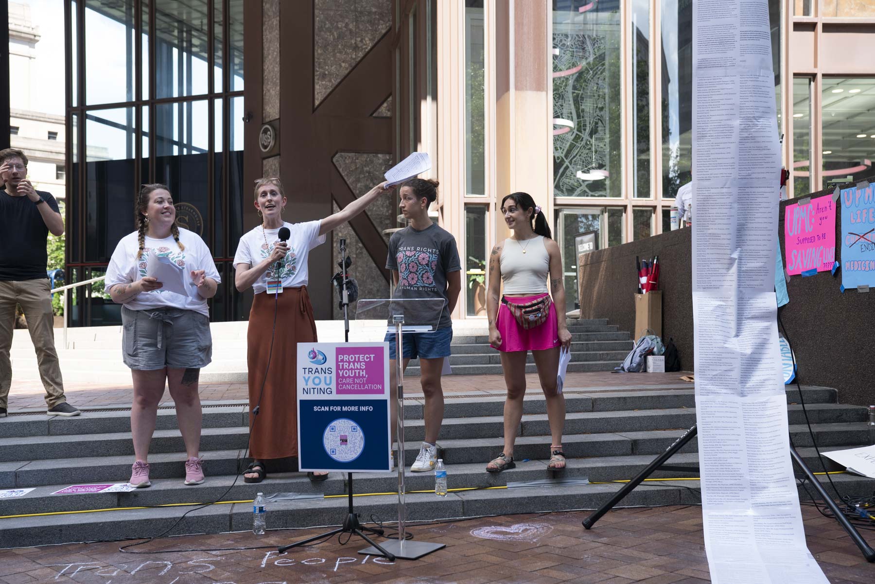 @publicsource Happening now: protestors gather outside UPMC’s Downtown headquarters to demand the health system reinstate gender-affirming care for patients 19 and younger.