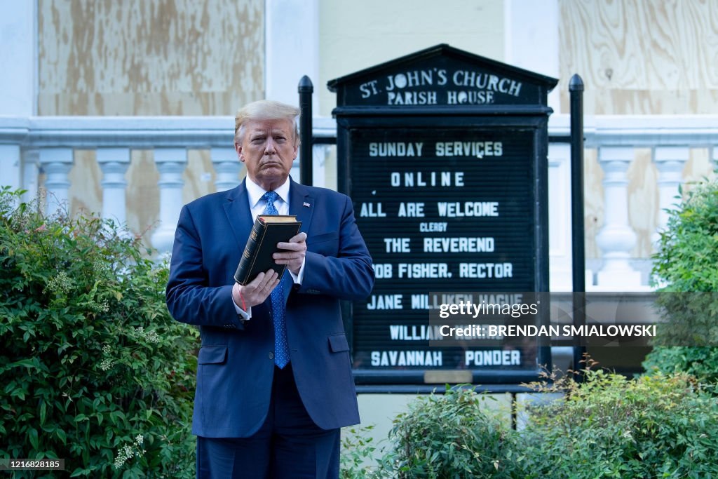 Trump stepped in front of the church, awkwardly fumbled with a Bible, and hoisted it as if swearing to keep his promise from the Rose Garden when he told the nation, “I have recommended that every governor deploy the National Guard. If they refuse to take action, I will deploy the US military to quickly solve the problem for them.”